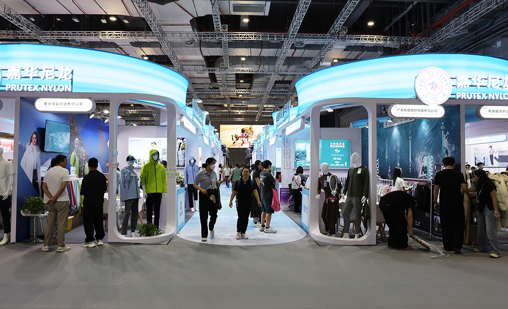 新材面料展臺重磅推出了八大核心系列產品,集中呈現了兼具功能性與舒適性的高性能面料。公司拳頭產品,新一代高性能錦綸PRUTAC面料 受到普遍關注;禪翼之殼產品獲2025中國國際面料設計大賽“最佳科技應用大獎”,也成為本次展會的一大亮點。